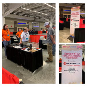 With one day’s break, the PM team was then on to Cleveland for the TMC 2023 Fall Meeting & National Technician Skills Competitions, also known as SuperTech. Joined by our engineering colleagues, Peterson participated in a series of educational sessions and task force meetings created to establish guidelines for trucking technology and maintenance. Whether by leading task force sessions or participating in panel discussions, Peterson was proud to answer the call when asked to play a role in the establishment of recommended practices for the trucking industry. A significant part of this meeting is the SuperTech competition, a series of stations that test the skills of trucking technicians and allow them to compete for recognition and valuable prizes. Again this year, the Peterson engineering and sales teams worked together to host the T12 Trailer Electrical Corrosion station, a station that tested the technician’s ability to detect possible corrosion in a wire/cable and then to complete a proper repair using the tools and items provided. Michael Kerfoot, Jr. was the winner of station T12 and we congratulate him not only on winning this station but on his other victories as well. The trucking industry and those that it serves should be encouraged by the extensive amount of knowledge and experience that was displayed by the technicians during this competition. The future of the industry is very bright.
