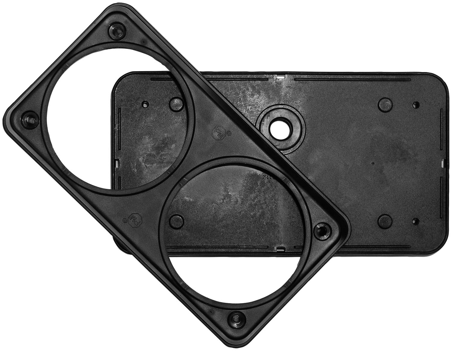 - Includes separate backing plate with 1" (25 mm) cable exit hole and integral mounting studs, plus attachment screws.