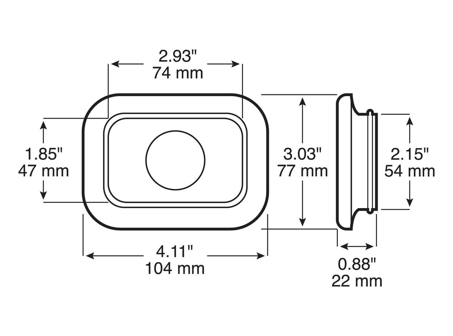- Mounting hole dimensions: 3.5" x 2.4" with 7 / 16" radius corners. 1/8" max panel thickness.