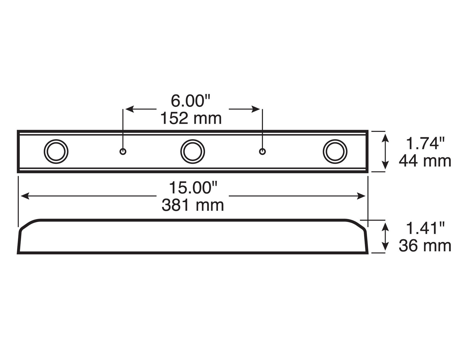 - Three individual single-diode 1-3/8" diameter Lumen X ® Dot XL ™ lights pre-mounted in rugged, one-piece, corrosion-resistant polymer housing.