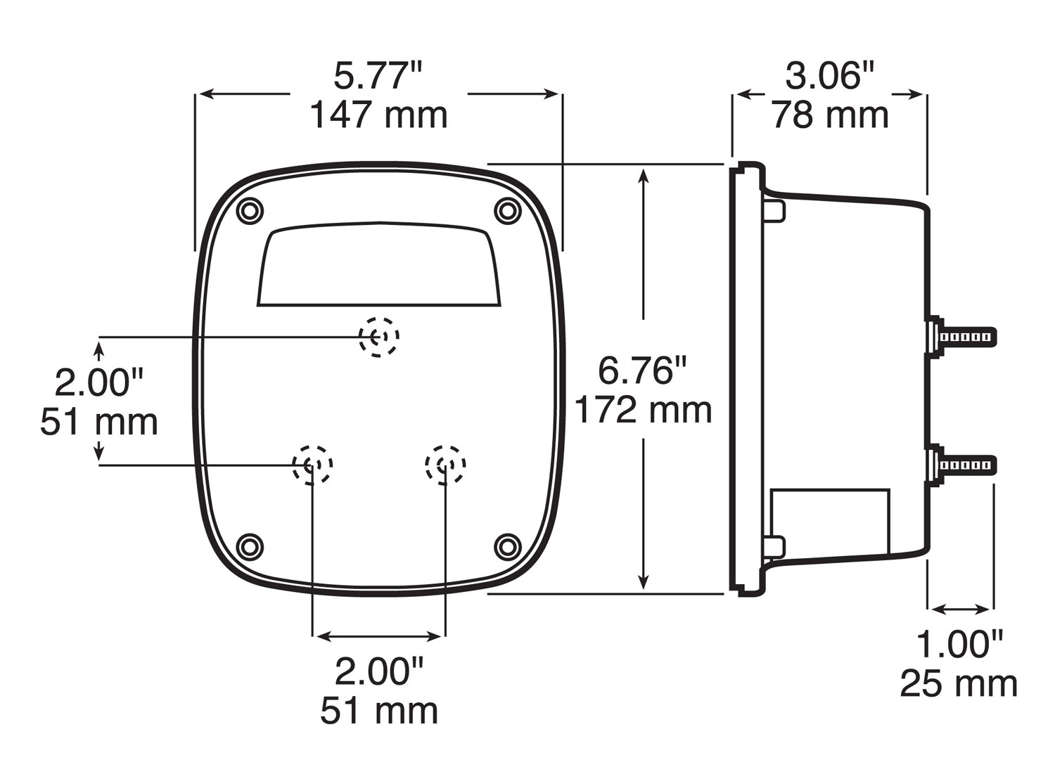- Sealed, submersible construction recommended for marine trailer use.
