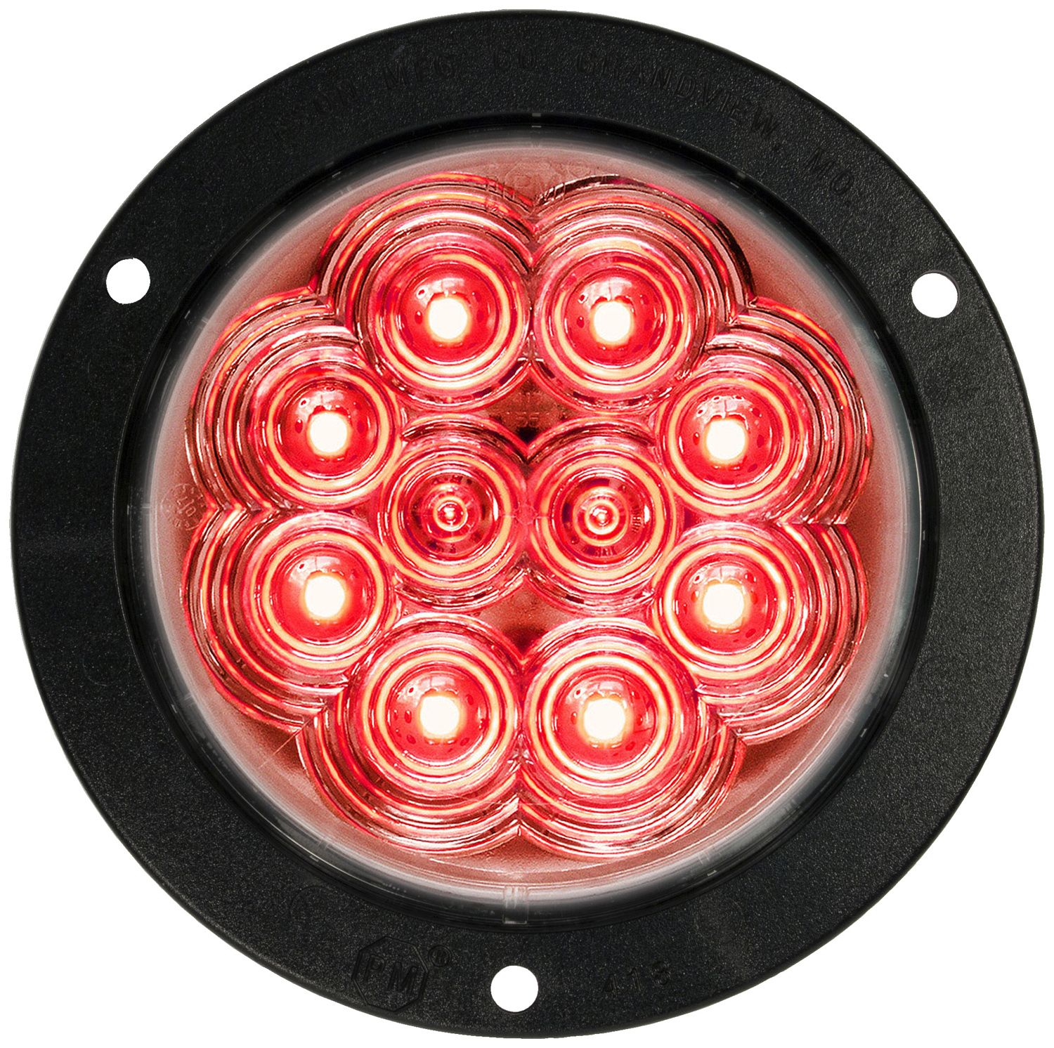 LED Stop/Turn/Tail, Round, 10 Diode Clear Lens Flange-Mount 4 inch, Multi-volt, red, clear lens, poly bag
