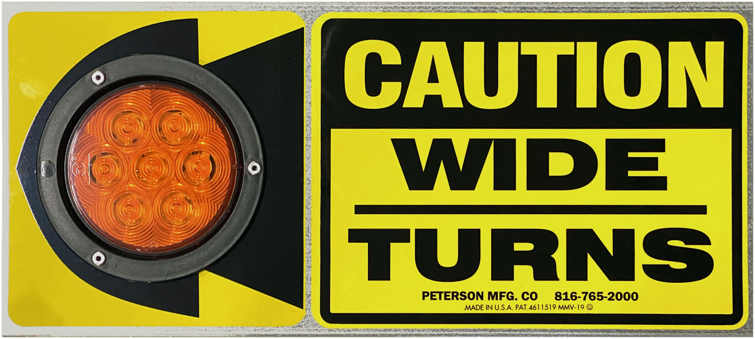 - 4" mid-turn light with "Caution Wide Turn" placard.