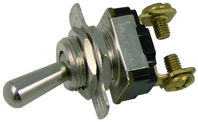 On-Off Metal Bat Handle Toggle SPST Switch; 6A / 12V; Viz Pack