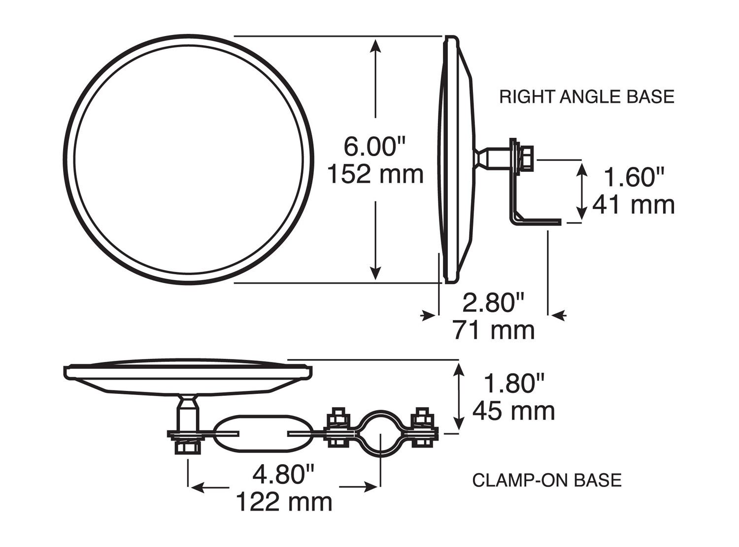- Convex glass mirror available in 5" and 6" diameters.