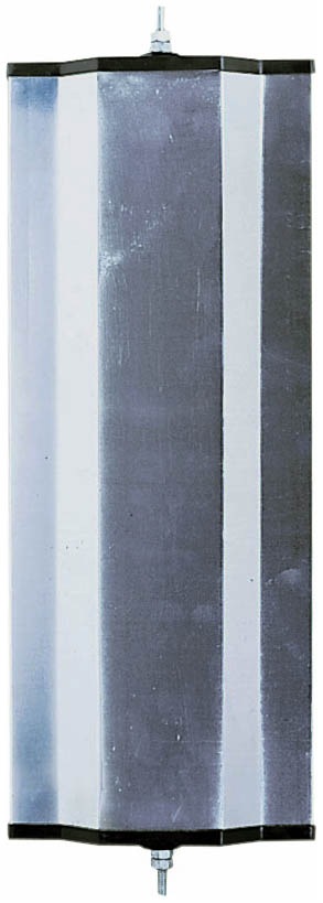- Angled, anodized aluminum back with black aluminum end caps.