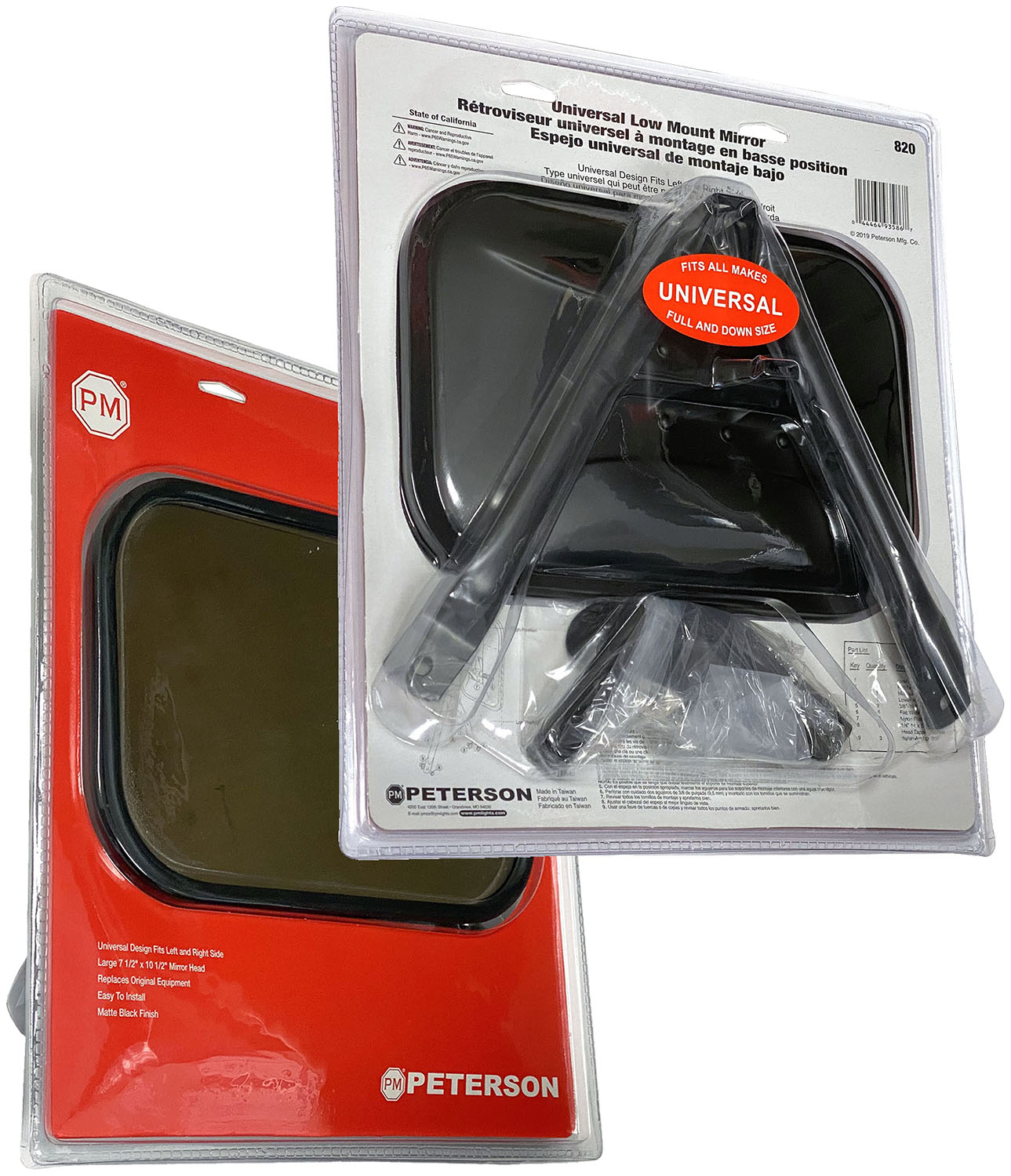 Mirror, Universal, Swing-Away, Rectangular, Black, 7.5 inch x 10.5 inch, Viz Pack