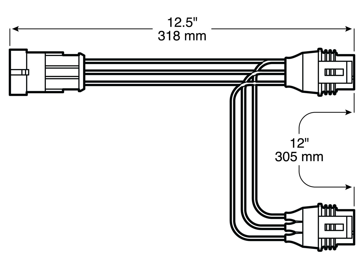 - Three AMP-compatible hardshell connectors (two female plugs, one shrouded male plug).